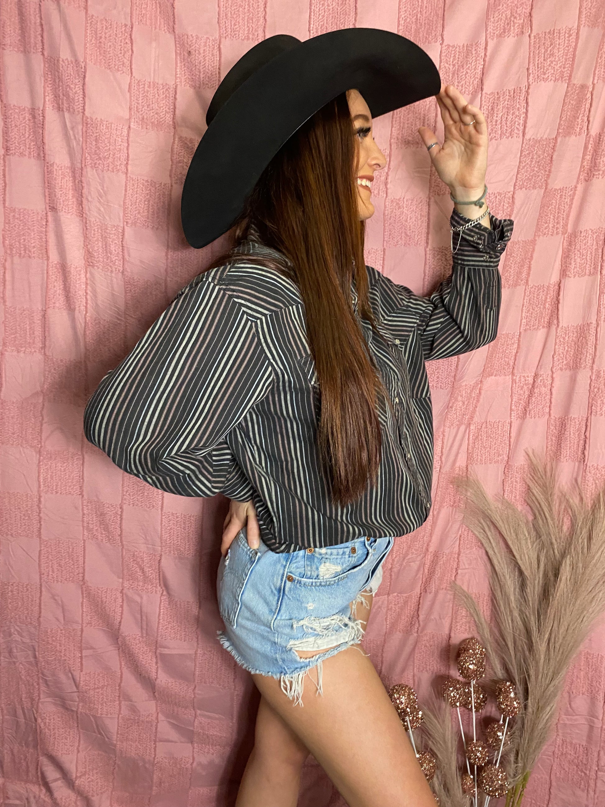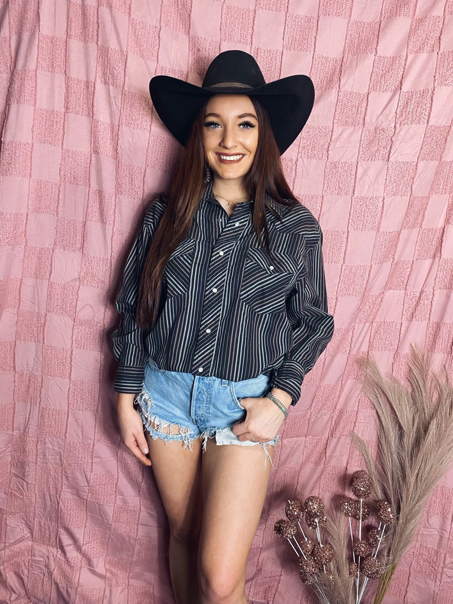 This pearl snap shirt features old school pinstripes just like PawPaw used to wear!