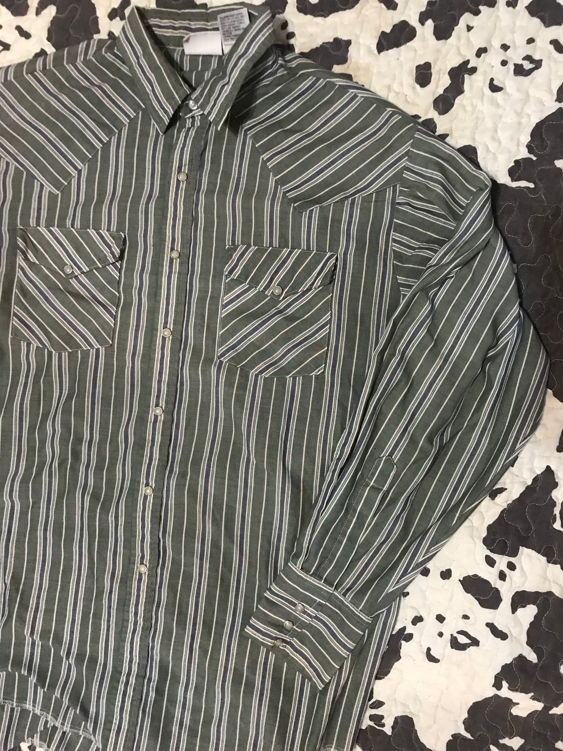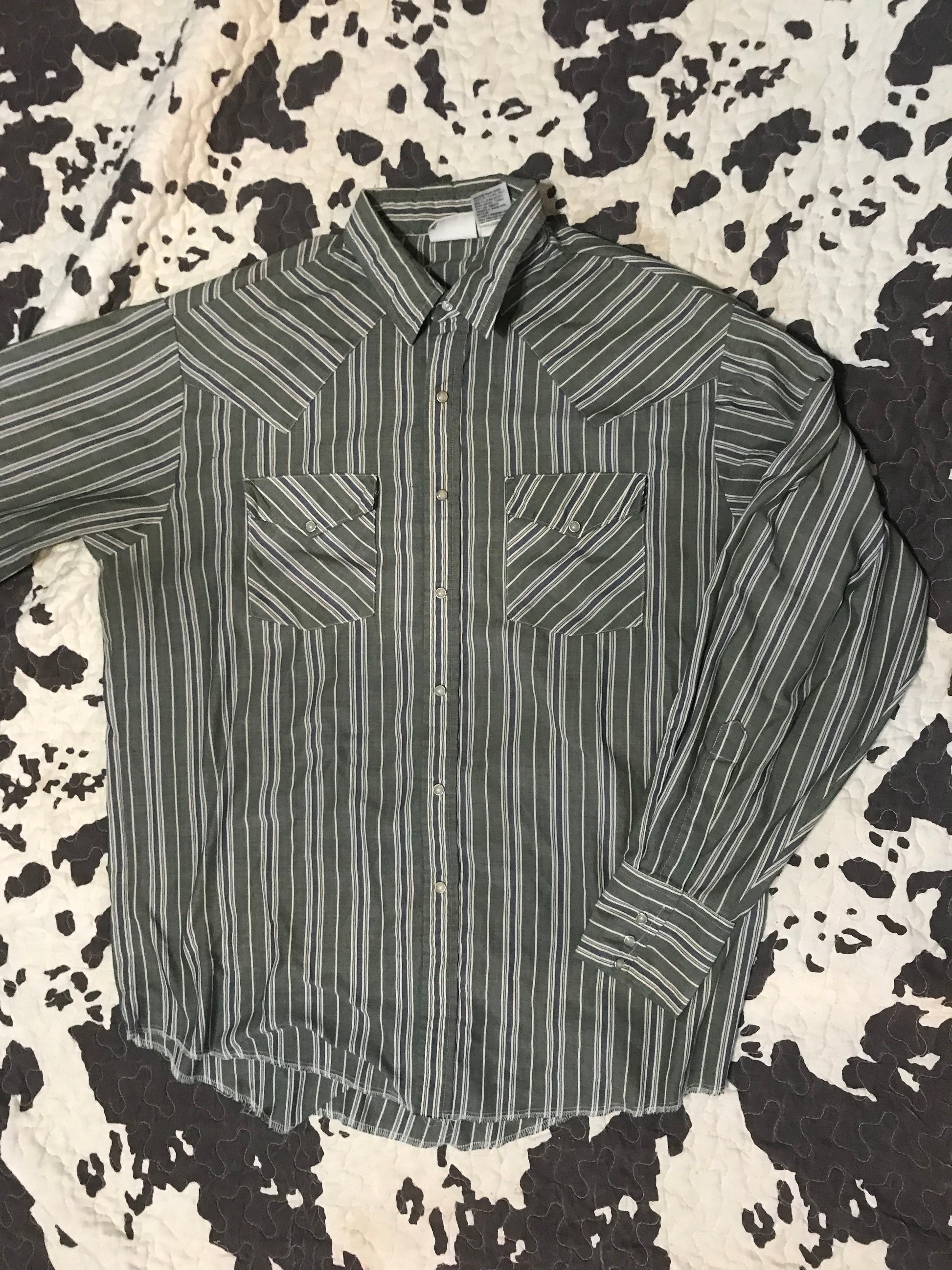 This retro pearl snap shirt has a cool, old school striped pattern!
