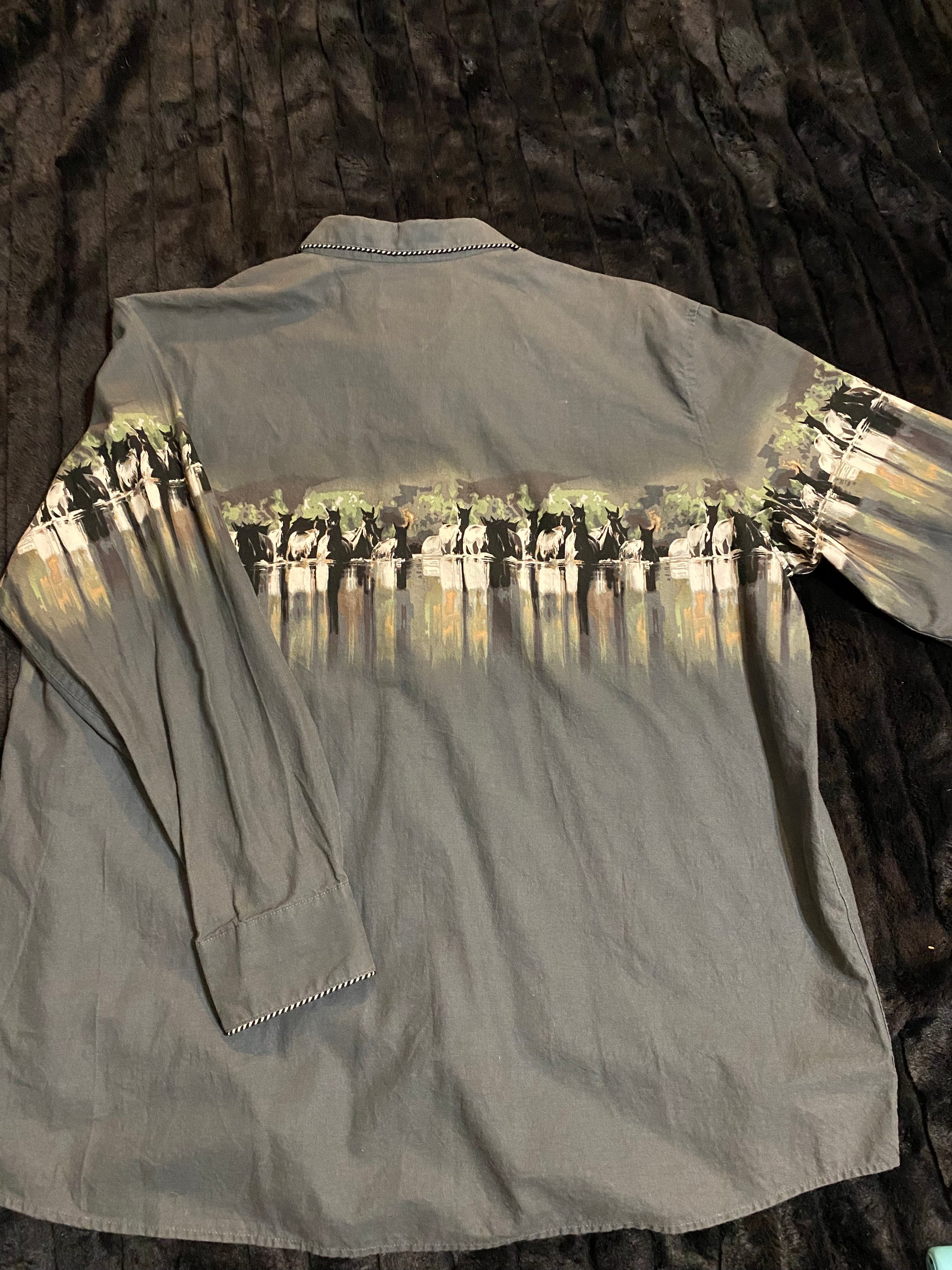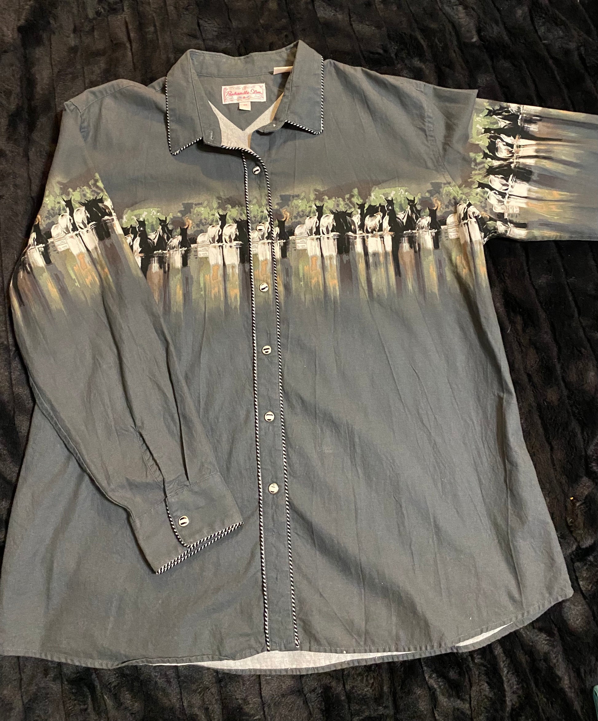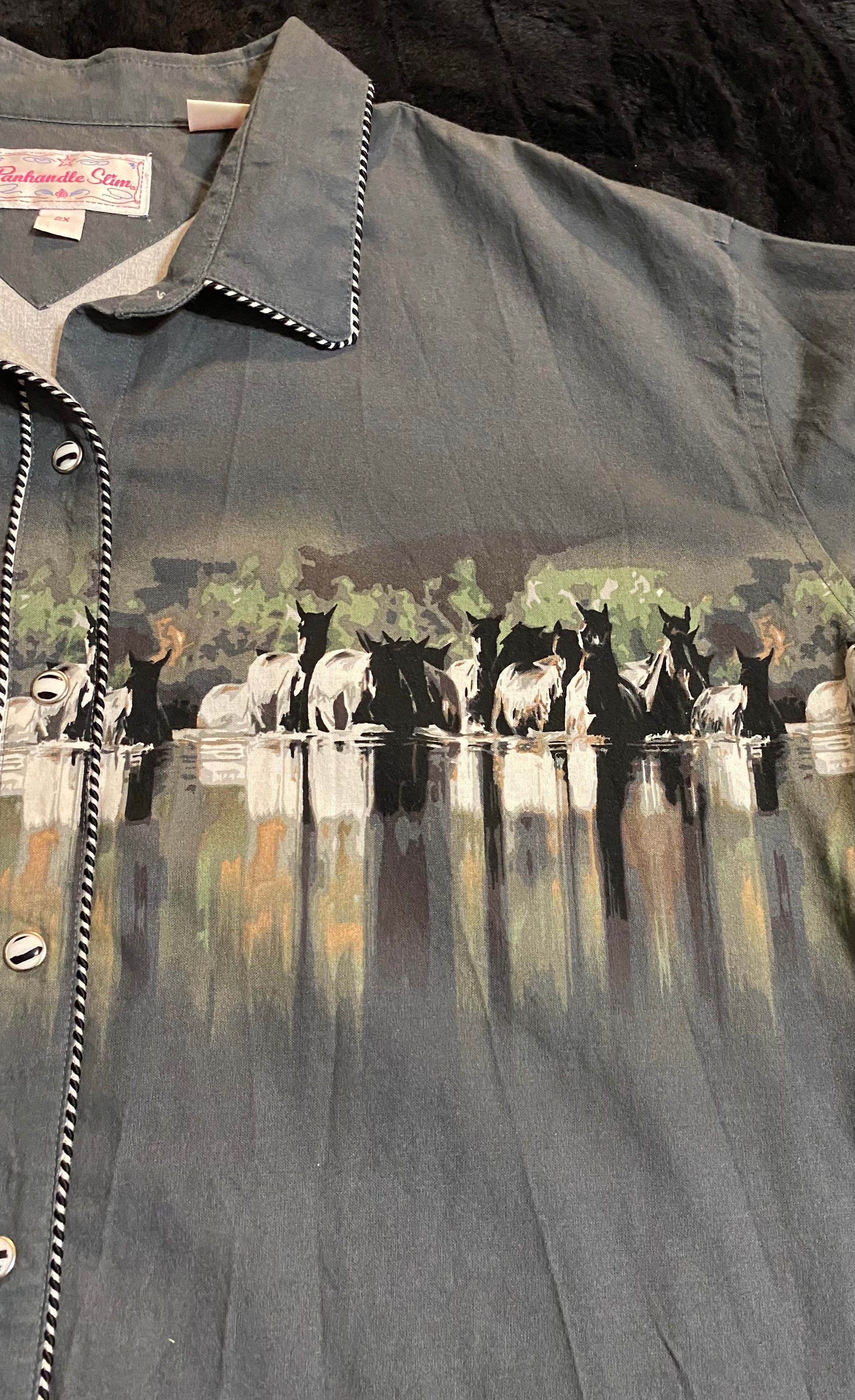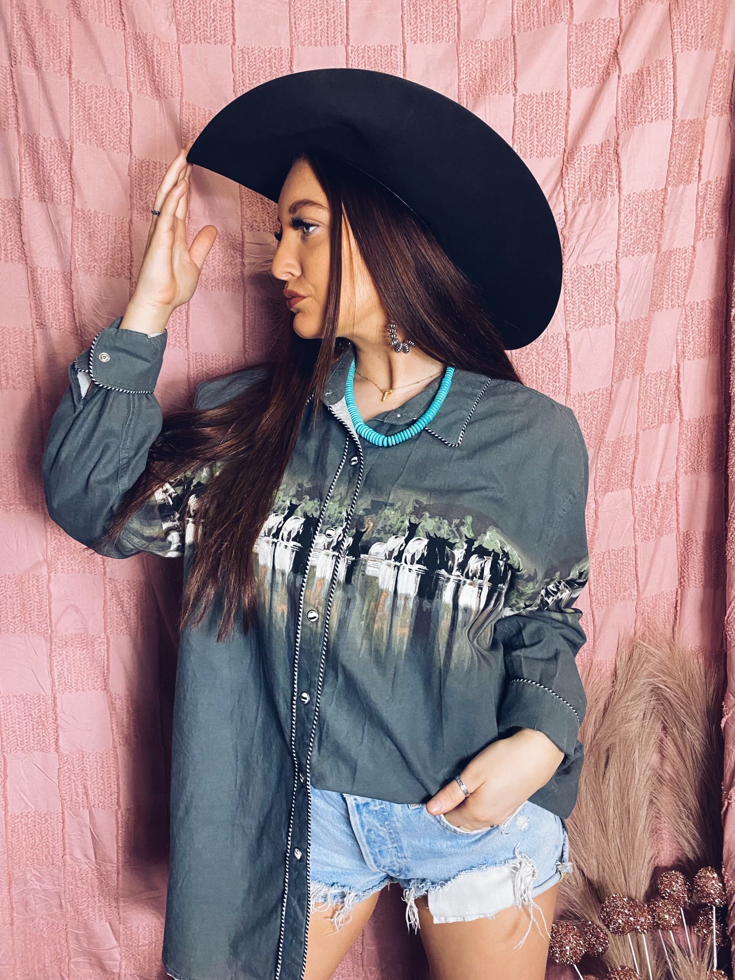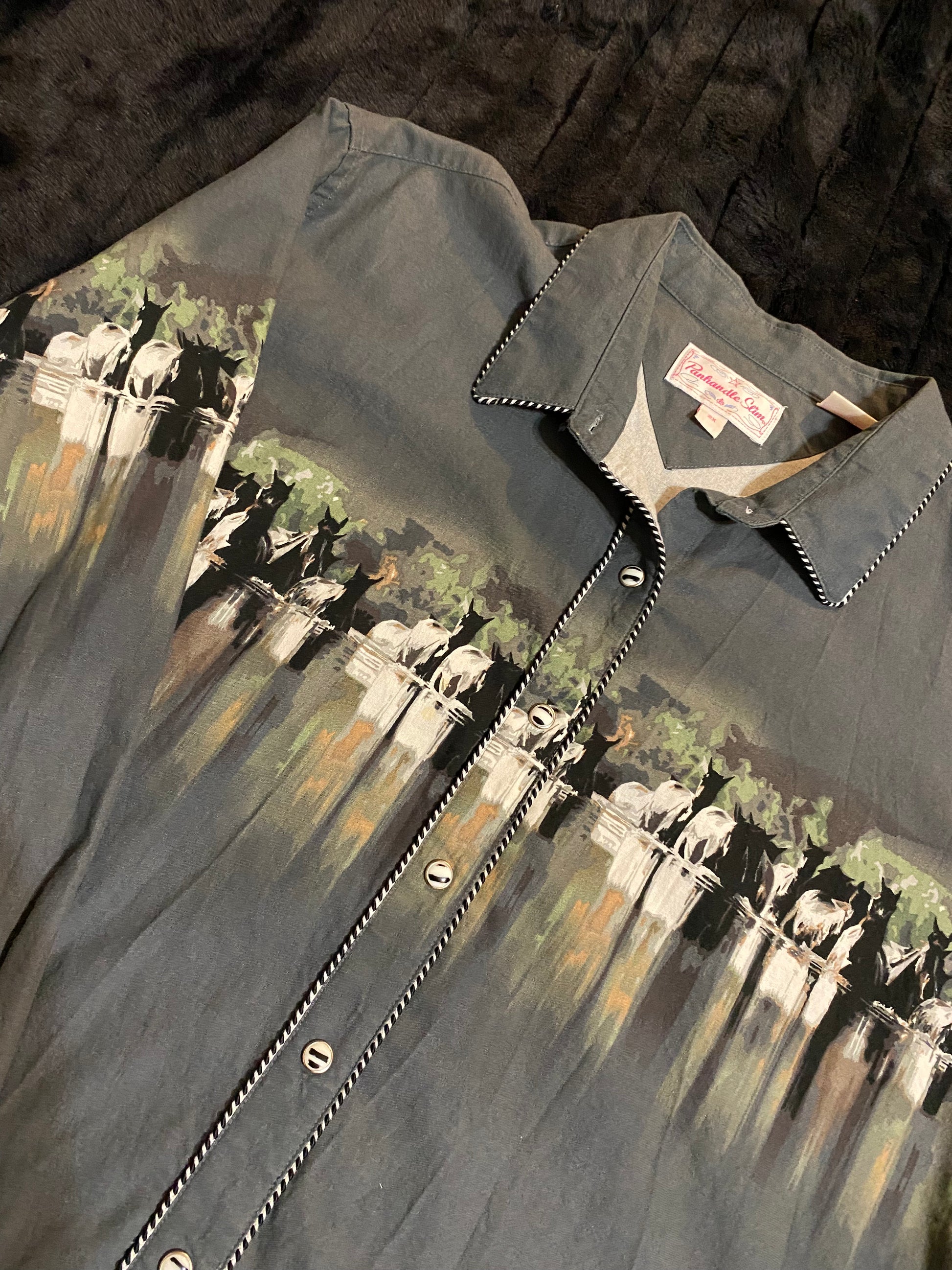 The Punchy horse design on this pearl snap shirt is everything!!
