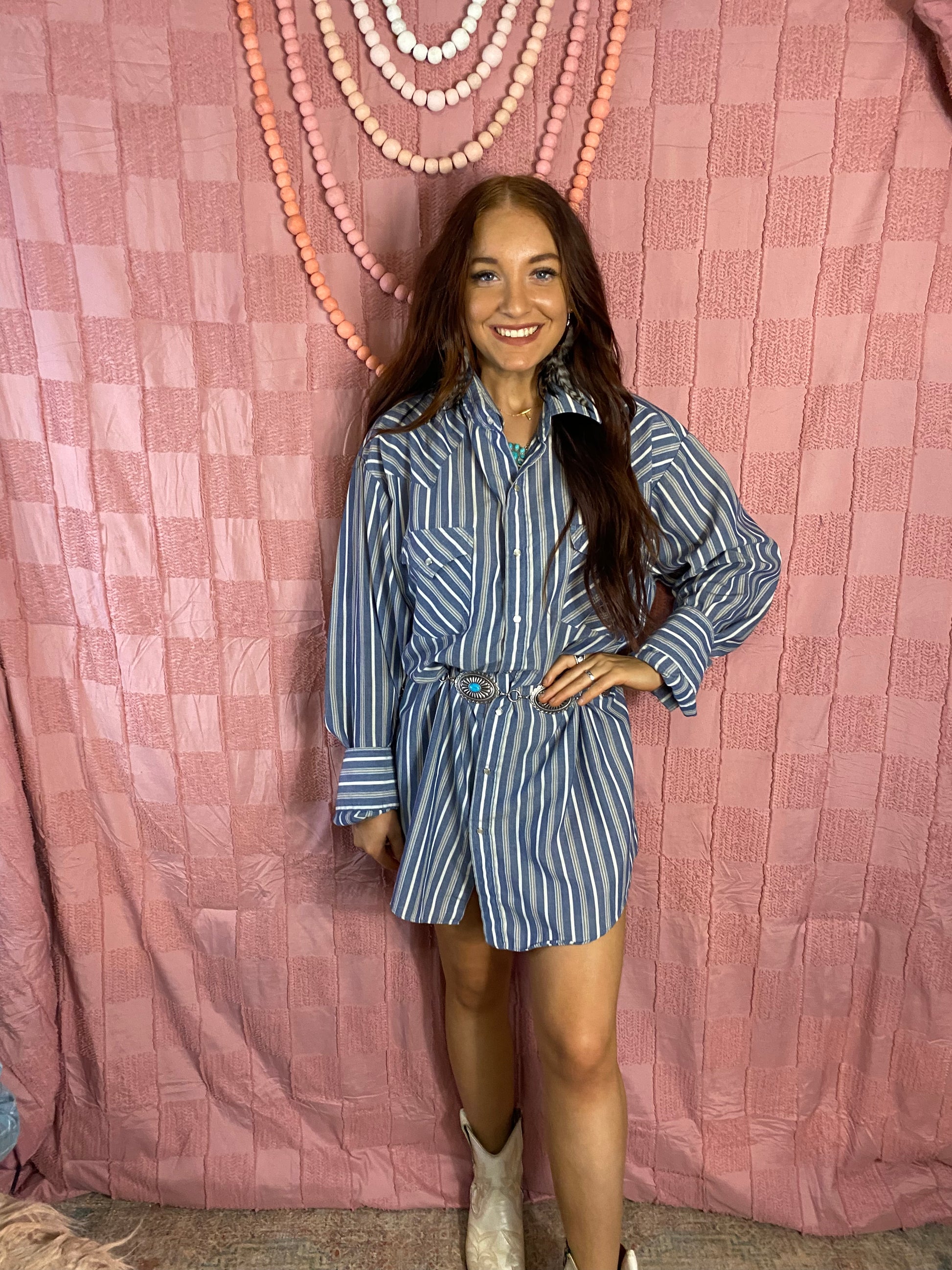 We love the classic look of this striped pearl snap shirt!